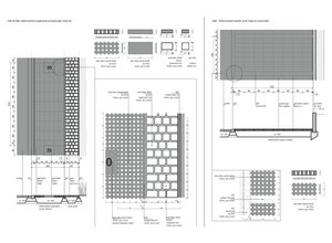 — À l’Ouest et en contrebas de la parcelle, une voie à double sens (l : 5 m) supporte la majeure partie des flux véhicule en desservant les parkings semi-enterrés et stationnements en bataille des bâtiments collectifs. Les surfaces minérales sont réduites au minimum au profit des surfaces plantées et semi-minérales (stationnements), constituant un vaste écrin vert supportant les nouvelles habitations.